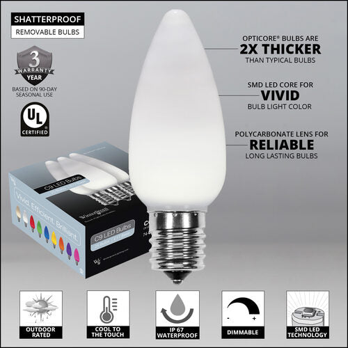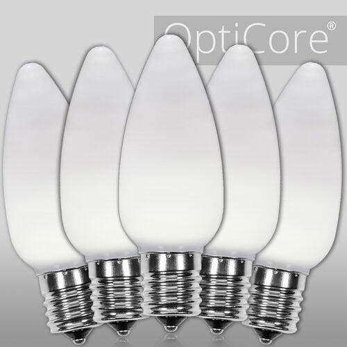 - C9 Cool White LED OptiCore Bulbs, E17 base